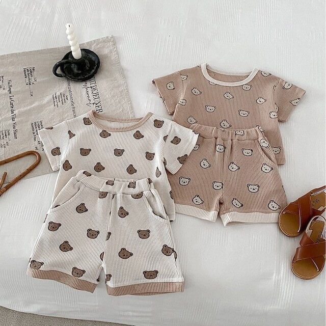 BABY 夏新作 クマ柄 ワッフル セットアップ