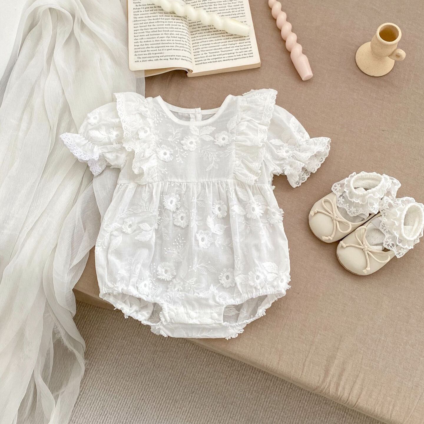 BABY 夏新作 花刺繍 半袖 ロンパース